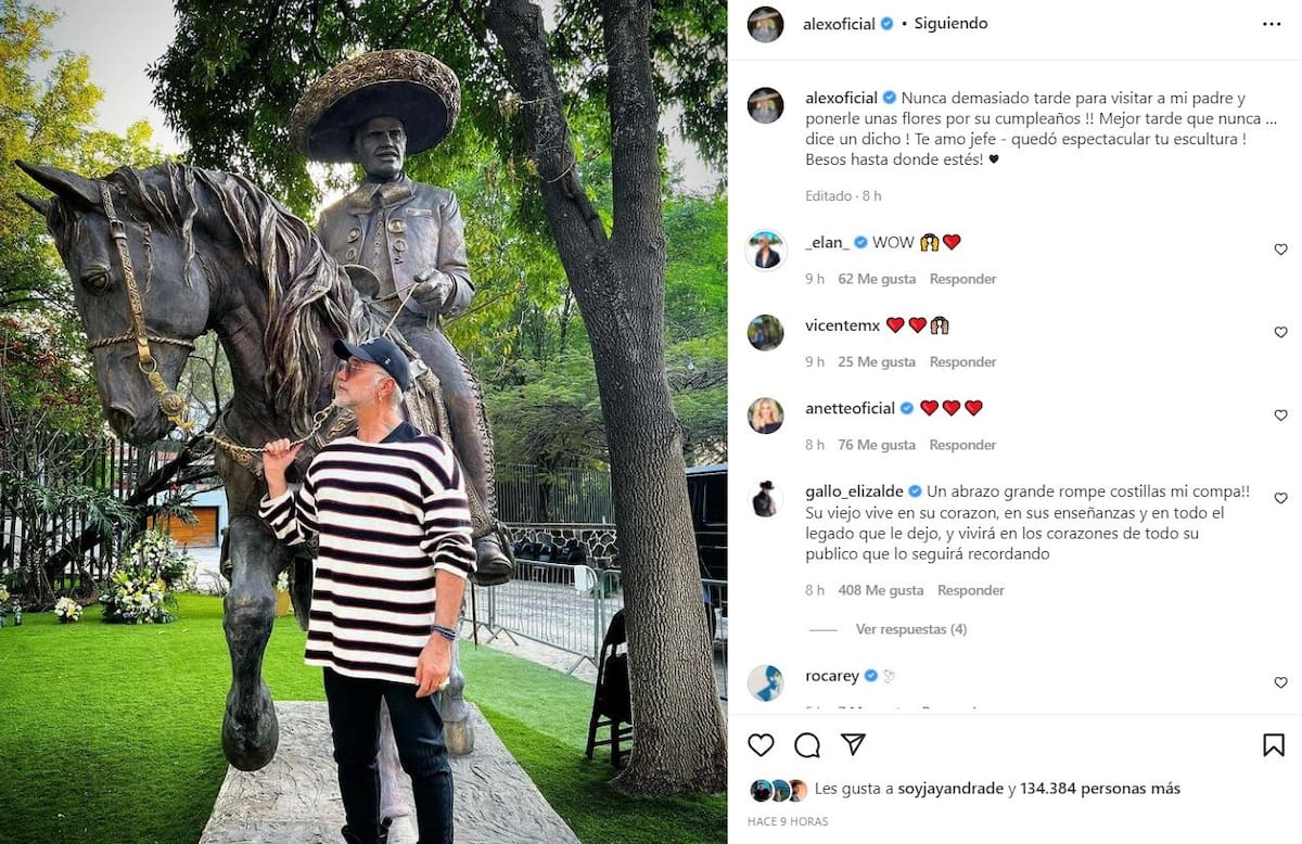 Sin embargo, sus compromisos laborales le impidieron a Alejandro Fernández estar presente en los festejos, es por eso que este fin de semana asistió al rancho de su padre y compartió con sus seguidores una fotografía tomada al pie de la escultura.