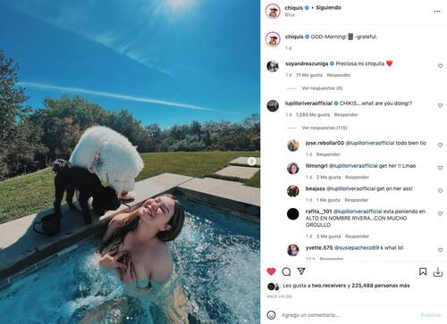 En ese punto, recientemente Chiquis Rivera compartió unas fotografías en las que aparece de una manera muy atrevida, posando topless en un jacuzzi a la luz del sol, las cuales acompañó con la descripción: "GOD-Morning! -grateful".