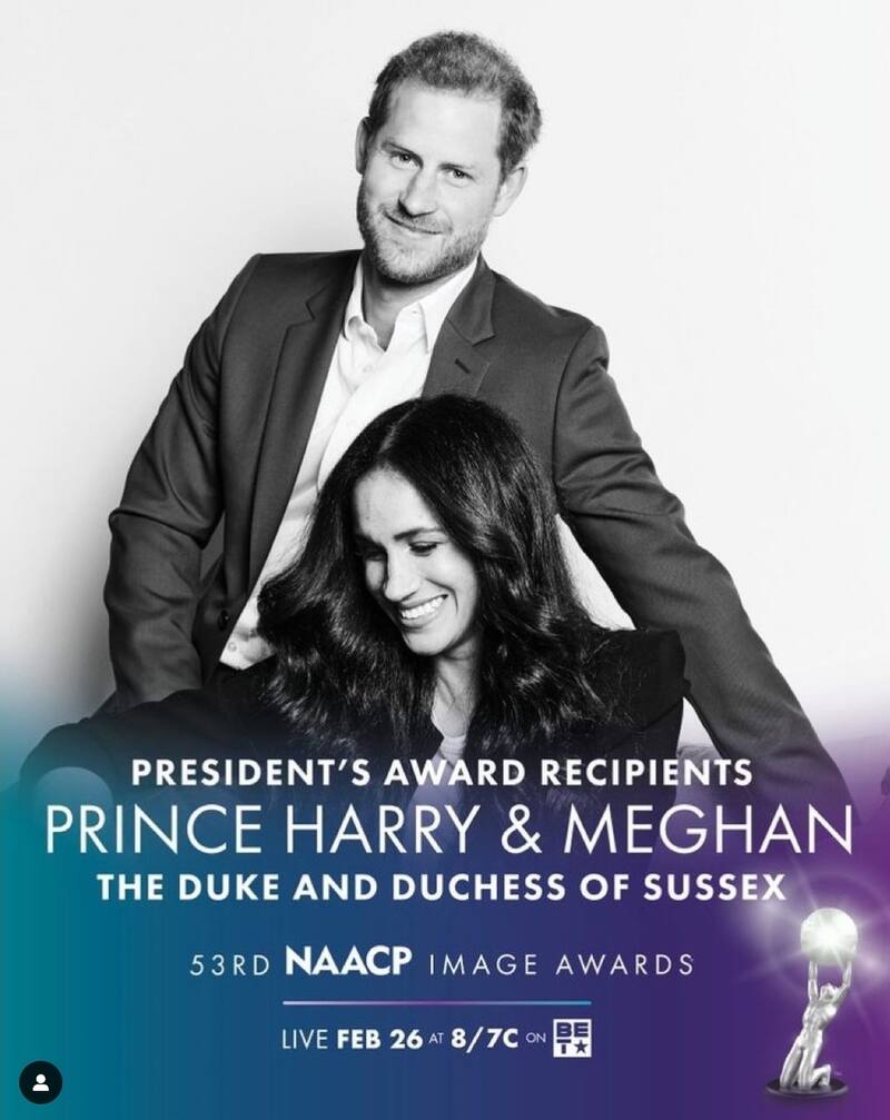 Meghan Markle y el príncipe Harry, recibirán el Premio del Presidente durante la 53 entrega de los Premios Image de NAACP (Asociación Nacional para el Progreso de la Gente de Color) este fin de semana.