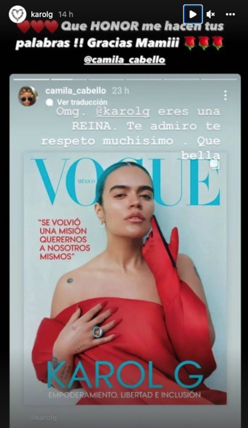 Entre los buenos comentarios, surgió el de Camila Cabello, quien se ha distinguido por estar orgullosa de sus raíces latinas, por lo que la cubana-estadounidense, compartió la portada a través de sus Instagram Stories con un emotivo mensaje.