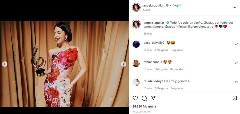 La hija de Pepe Aguilar se lució con cuatro distintos vestidos durante la ceremonia, mientras que la pareja de Guaynaa se robó las miradas con un outfit verde. Evaluna, quien está en plena cuenta regresiva para dar la bienvenida a Índigo, optó por el negro, mientras que la joven cantante argentina apostó por un rojo.