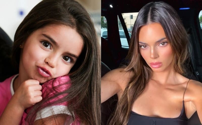 Aunque su relación genética es nula, de acuerdo a algunas publicaciones de Kendall Jenner de cuando era pequeña, hay cierto parecido con Aitana Derbez, desde aquel tierno flequillo hasta las mejillas.