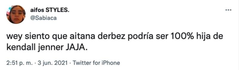 Aunado a las fotografías presentadas, se suman algunos tweets de usuarios que hacen la comparación de forma evidente. También están los que dicen que Aitana Derbez se parece más a Kendall Jenner que a su hermana mayor, Aislinn Derbez.