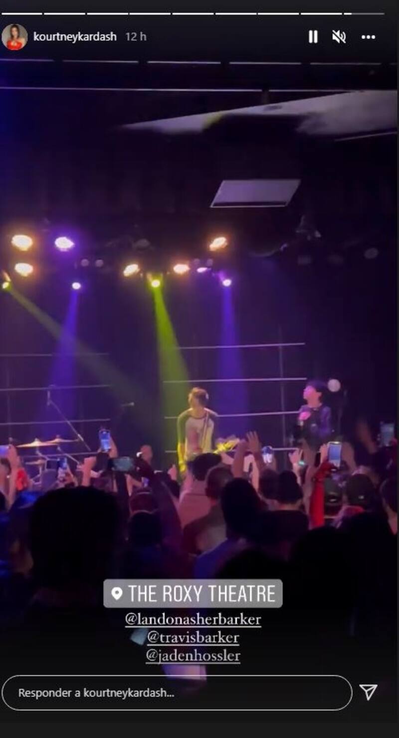 Kourtney Kardashian y Travis Barker fueron vistos este fin de semana en el show musical que ofreció el hijo del baterista de Blink-182, Landon Barker, en The Roxy Theatre de West Hollywood.