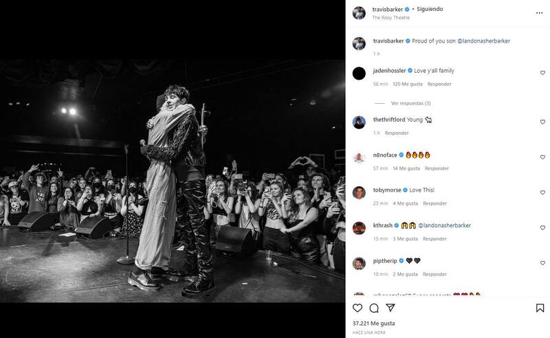 Además el baterista de Blink-182 compartió una postal en su cuenta oficial de Instagram en la que se le ve arriba del escenario abrazando a su primogénito: "Orgulloso de ti hijo", escribió el músico al pie de la publicación, que al momento registra más de 33 mil reacciones..