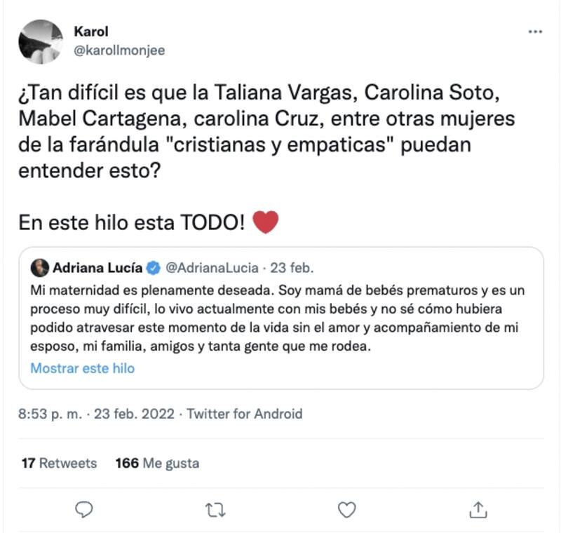 Aquí algunas de las reacciones en contra de la publicación de Carolina Cruz
