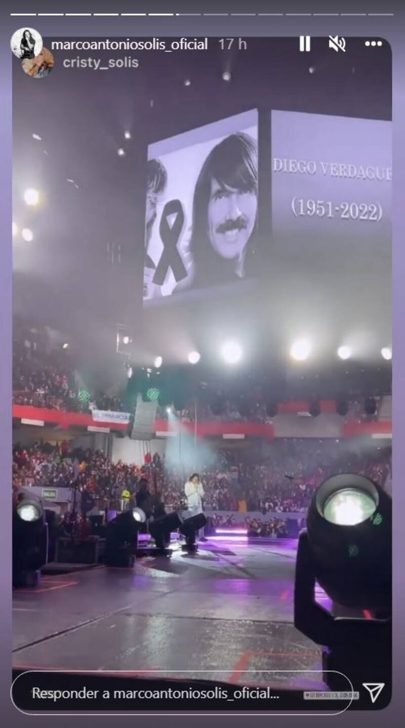 Durante su concierto celebrado la noche del jueves en el Centro de Usos Múltiples, de Hermosillo Sonora, Marco Antonio Solís recordó con algunas fotografías y el tema "Volveré" a su amigo y colega Diego Verdaguer, quien perdió la vida el pasado 27 de enero, después de una dura batalla contra la covid-19.