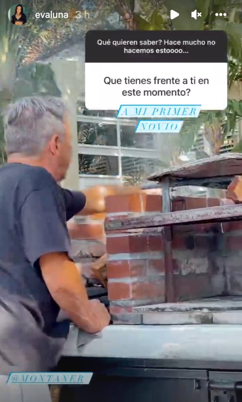 Esta tarde de domingo Evaluna se encuentra pasando el tiempo con sus papás y esposo en el jardín de su casa. Cuándo le preguntaron a la cantante qué era lo que tenía frente a ella, Evaluna contestó: "A mi primer novio", con un video en el que apare su papá cocinando.