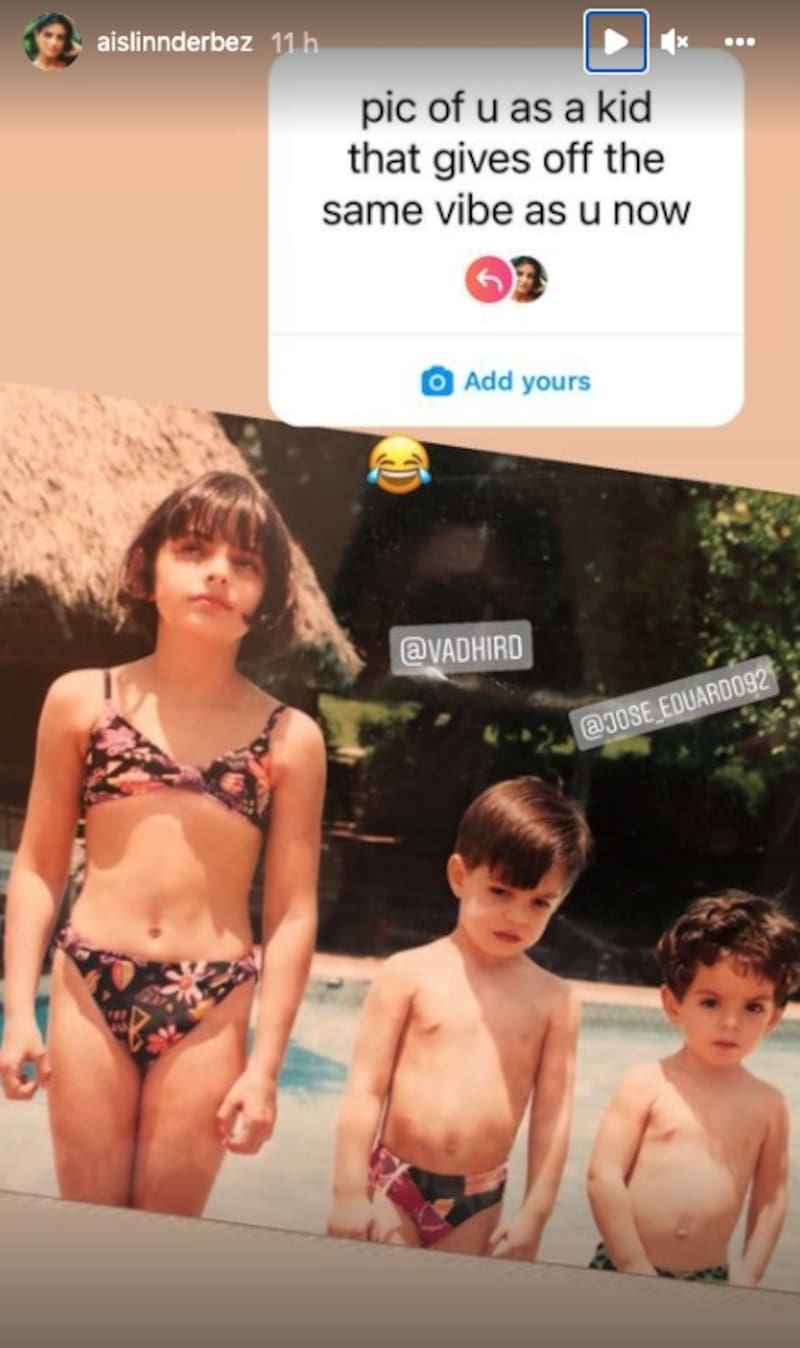 A través de una publicación en sus Instagram Stories, siguiendo un reto, Aislinn Derbez compartió una fotografía en la que tenía aproximadamente 9 años, mientras que Vadhir 4 años y Jose Eduardo solo 3 años, cuando se encontraban de vacaciones en la playa.