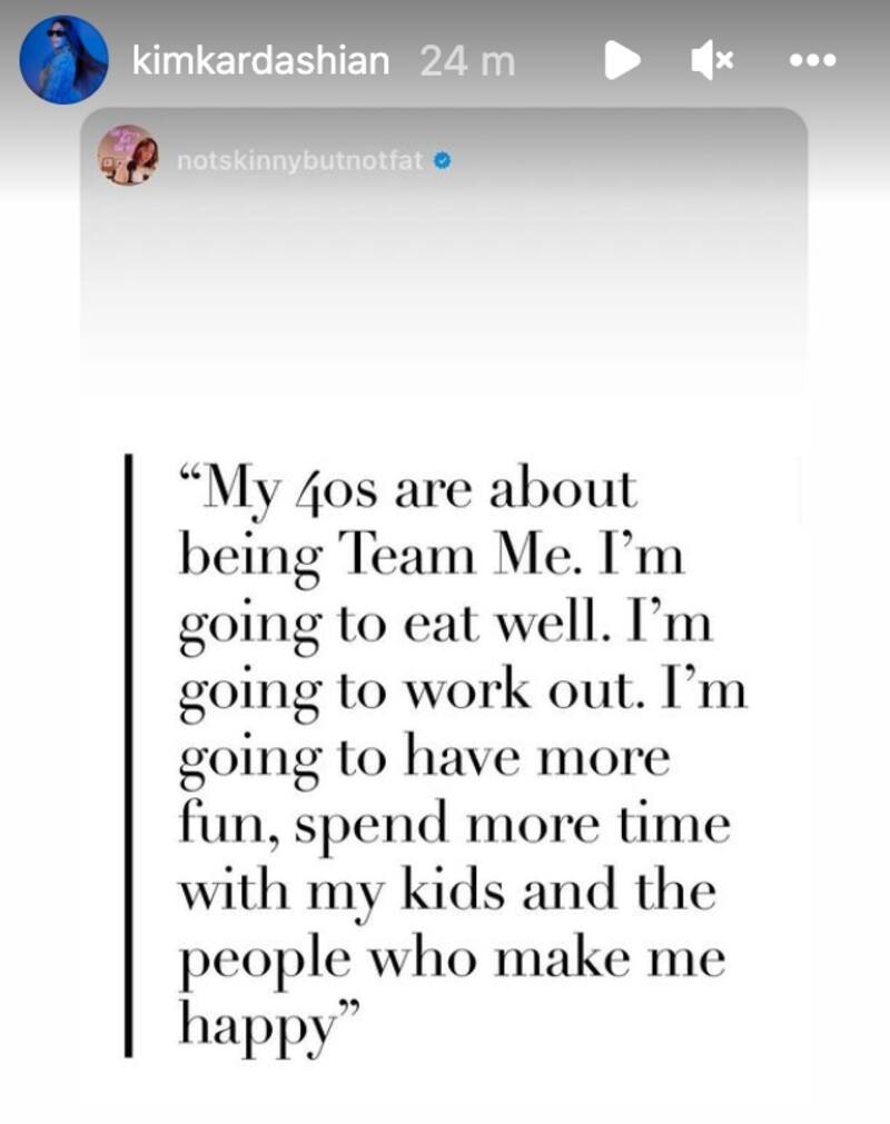 "Mis 40s son sobre ser mi propio equipo. Voy a comer bien. Voy a ejercitarme. Voy a divertirme más, a pasar más tiempo con mis hijos y la gente que me hace feliz", se lee en la publicación.