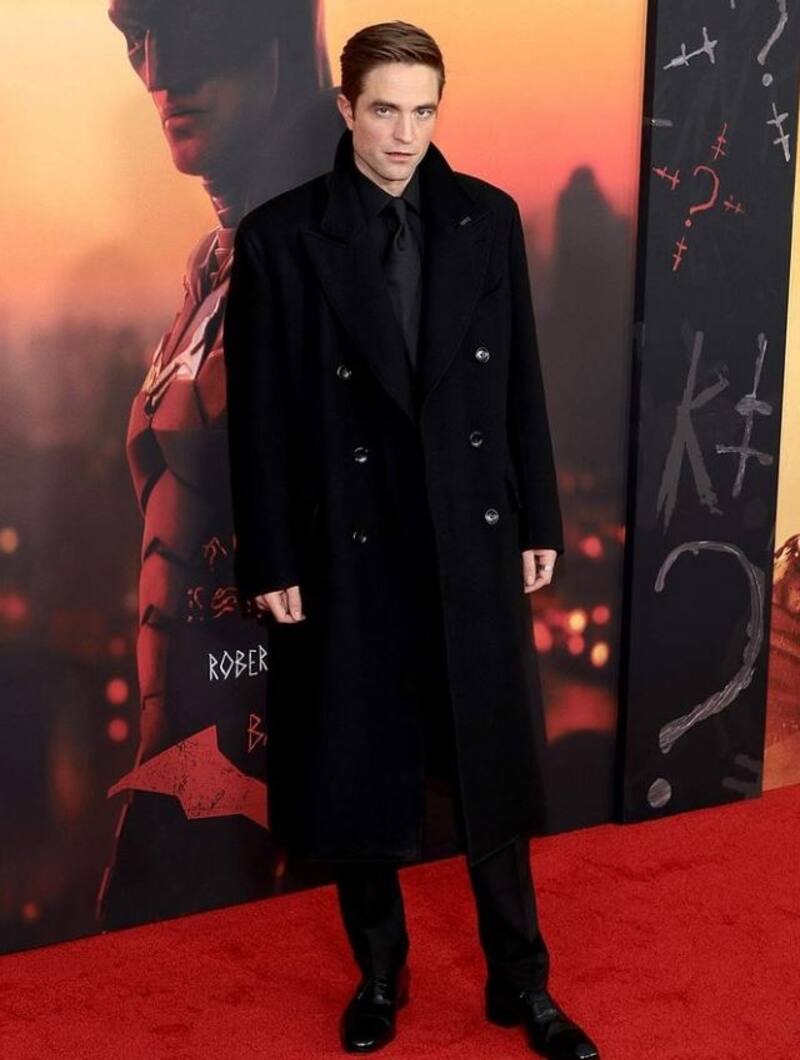Por su parte, Robert Pattinson vistió un traje en color negro, camisa y corbata de sedad del mismo color, además de una larga gabardina.