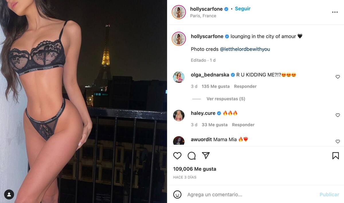 Holly Scarfone de 23 años habría estado pasando tiempo en París junto a Scott Disick. La noticia se dio a conocer luego de que la estrella de reality show publicara una fotografía en lencería con la Torre Eiffel de fondo.