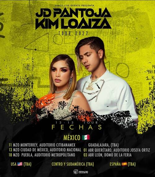 Con su "13•13 Tours", Kimberly Loaiza y Juan de Dios Pantoja visitarán Monterrey, Ciudad de México, Puebla, Querétaro, León y Guadalajara.