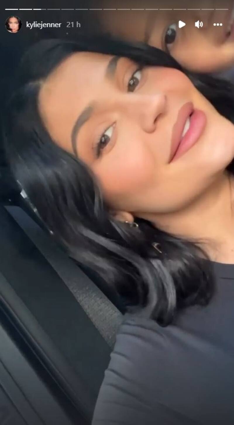 Kylie Jenner con una sonrisa y viendo a la cámara le pidió a su hija que le diera dos segundos para hablar con sus seguidores.