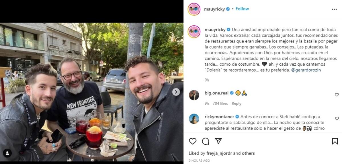 Los hijos de Ricardo Montaner, Mau y Ricky, también dedicaron sentidas palabras para el periodista de 51 años, quien falleció producto de un tumor cerebral. El dúo publicó en su cuenta de Instagram que con Gerardo Rozín tenían "una amistad improbable pero tan real como de toda la vida".