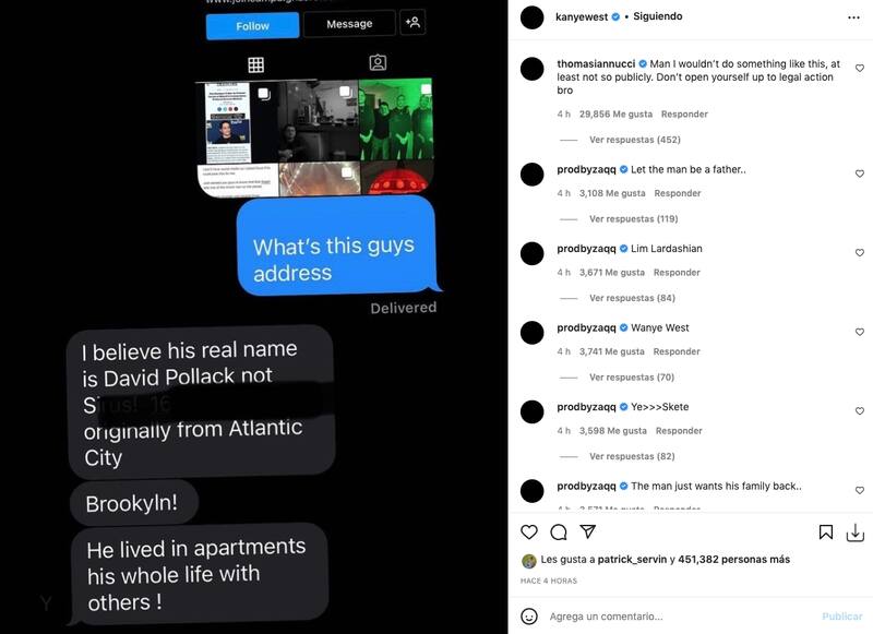 Aunque Kanye West no acompañó la captura de pantalla con ninguna descripción, recibió diversos comentarios en los que se leían señales de apoyo al rapero e incluso algunas amenazas indirectas a Pete Davidson.
