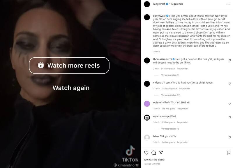 Kanye West una vez más estalló contra su ex Kim Kardashian porque su hija North West reapareció en TikTok hace tres días, a pesar de que él no está de acuerdo con ello.