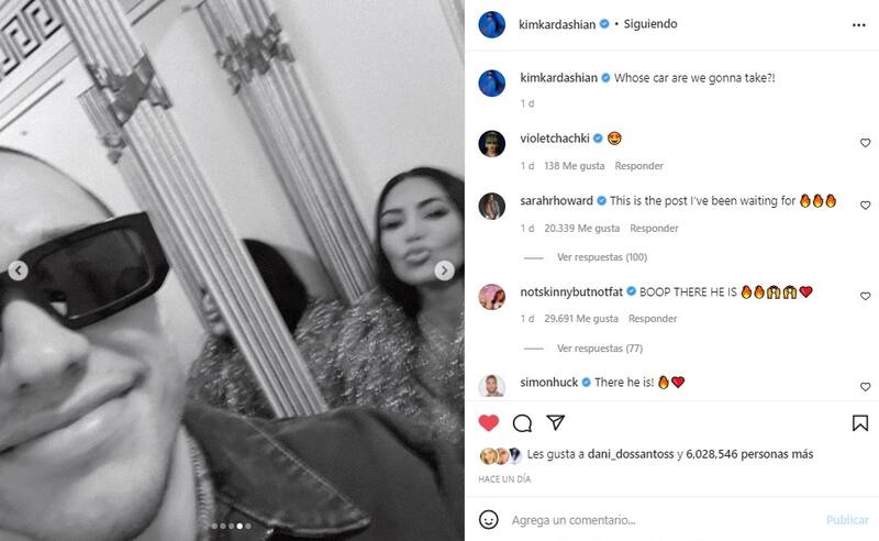 A la publicación la acompañó con la siguiente frase, "¿De quién es el coche que vamos a coger?" y ya tiene más de seis millones de likes. Entre los comentarios del post, su hermana Khloé Kardashian le escribió "me encanta esto", mientras que su madre, Kris Jenner y su hermana Kylie Jenner le dieron 'me gusta' a la publicación, demostrando su apoyo a la relación de Kim.