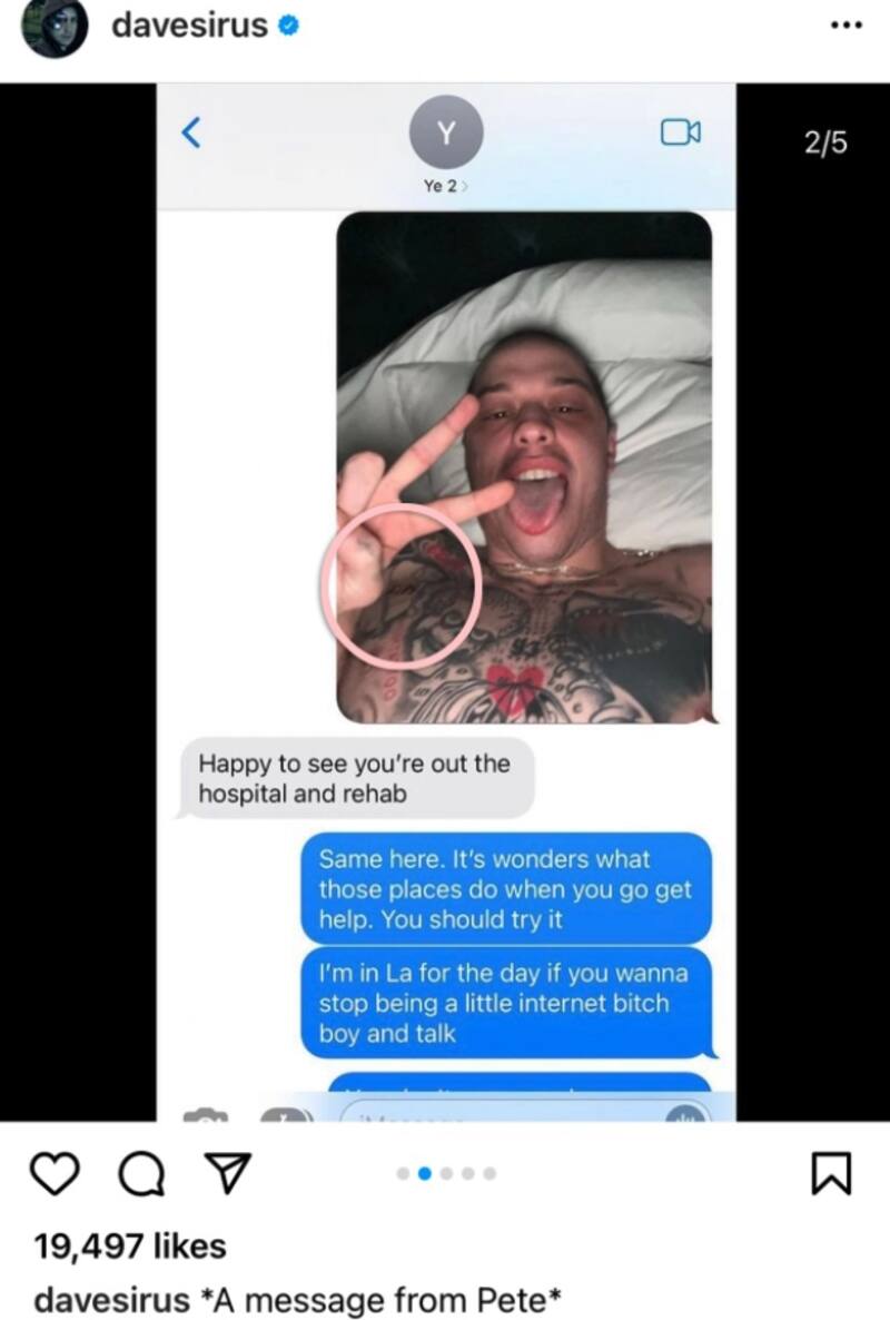 Luego de que el amigo del cómico, Dave Sirus filtrara una conversación entre Pete Davidson y Kanye West en la que ambos discuten sobre la situación con Kim Kardashian y la cuenta de TikTok de North West.