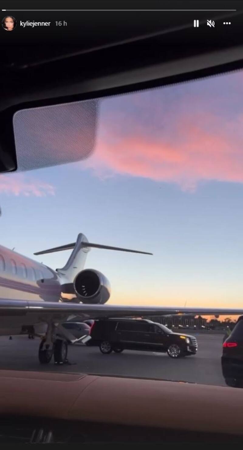 A través de Instagram Stories, Kylie Jenner compartió con sus más de 300 millones de seguidores videos cortos a su arribo al aeropuerto.