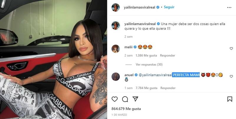 "Una mujer debe ser dos cosas quien ella quiera y lo que ella quiera", escribió en aquella oportunidad. "PERFECTA MAMI", comentó Anuel.