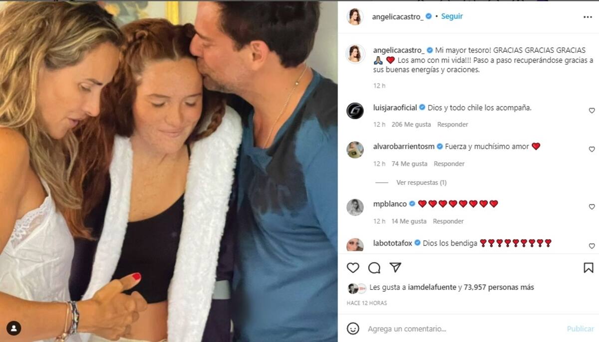 Angélica Castro, esposa de Cristián de la Fuente y madre de Laura, publicó en su Instagram la primera foto de su hija tras ser gravemente herida y ser operada de urgencia, en la emotiva postal, se puede ver a ambos padres acompañando y apoyando a Laura en estos difíciles momentos: