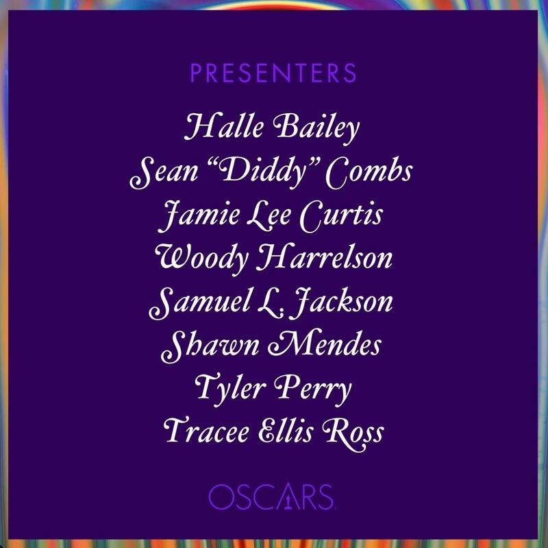 Ahora figura entre la lista de famosos que presentarán los Premios Oscar 2022, junto con Samuel L. Jackson, Halle Bailey, Sean "Diddy" Combs, Jamie Lee Curtis, Woody Harrelson, Samuel L. Jackson, Tyler Perry y Tracee Ellis Ross.