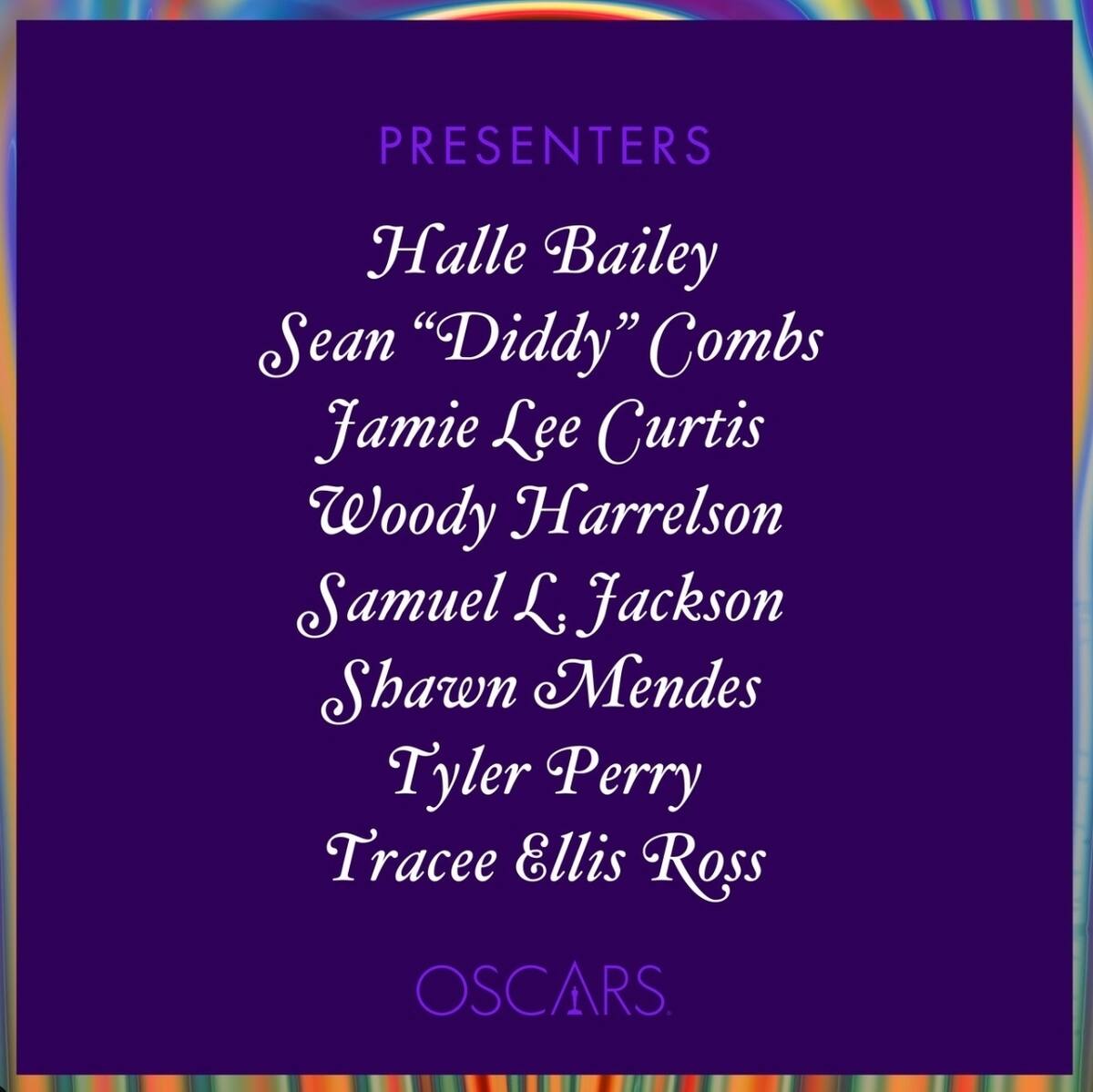 Ahora figura entre la lista de famosos que presentarán los Premios Oscar 2022, junto con Samuel L. Jackson, Halle Bailey, Sean "Diddy" Combs, Jamie Lee Curtis, Woody Harrelson, Samuel L. Jackson, Tyler Perry y Tracee Ellis Ross.