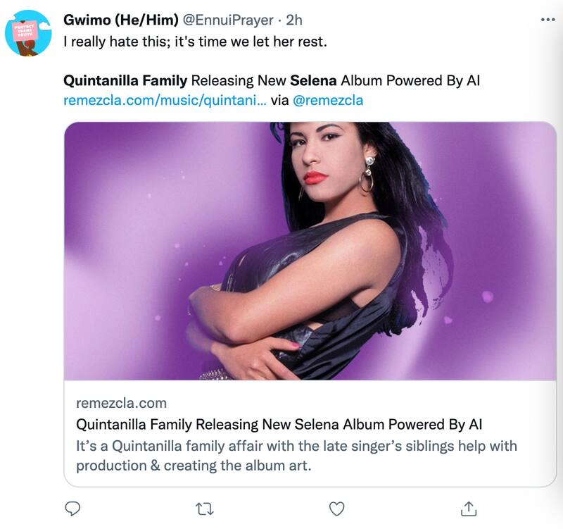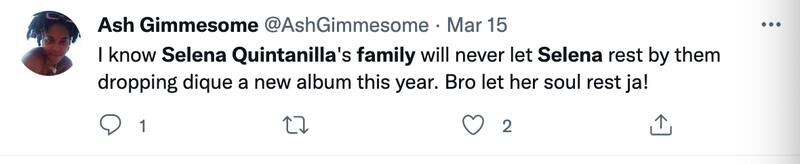“Se que la familia de Selena Quintanilla nunca la dejarán descansar y están lanzando un álbum este año. Hermano, deja que su alma descanse”.