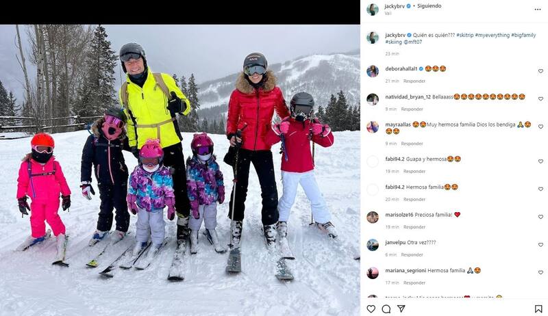 "Quién es quién???", escribió la mexicana al pie de una foto en la que se le ve en lo alto de una montaña nevada en compañía de su esposo y sus cinco hijas.