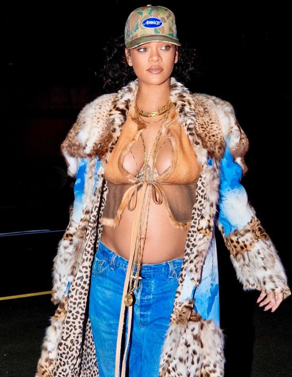 Rihanna reveló su embarazo con Rocky en Nueva York, apareciendo con la pancita descubierta en enero de este año.