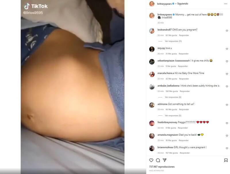 "Mami… sácame de aquí", escribió la intérprete de "Toxic" al pie del video, lo que generó revuelo con más de 700 mil reacciones en menos de media hora. Miles de seguidores de la cantante se preguntan si este video podría ser una señal de que esté esperando a su tercer hijo junto a su prometido Sam Asghari.