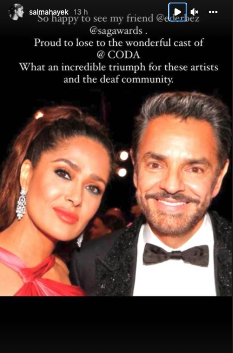 "Orgullosa de perder ante el maravilloso elenco de CODA. Qué increíble triunfo para estos artistas y la comunidad sorda", añadió Salma Hayek.