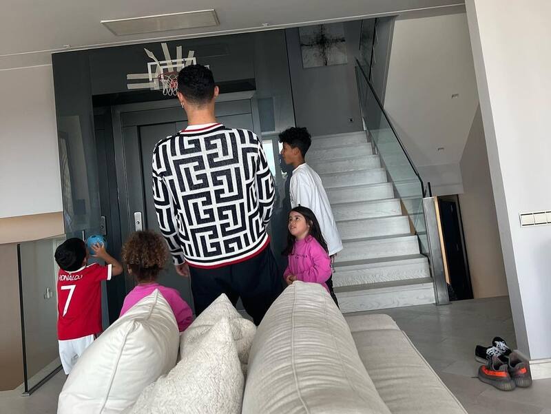 Georgina seleccionó una imagen en la que Cristiano Ronaldo se encuentra dentro de una piscina jugando con sus hijos. También compartió otra en la que, de nuevo en la alberca, ríe a carcajadas con Alana y Eva. En otro momento, quizá en casa, el astro del balompié parece estar practicando encestar con los niños en el aro de básquetbol instalado frente al elevador.