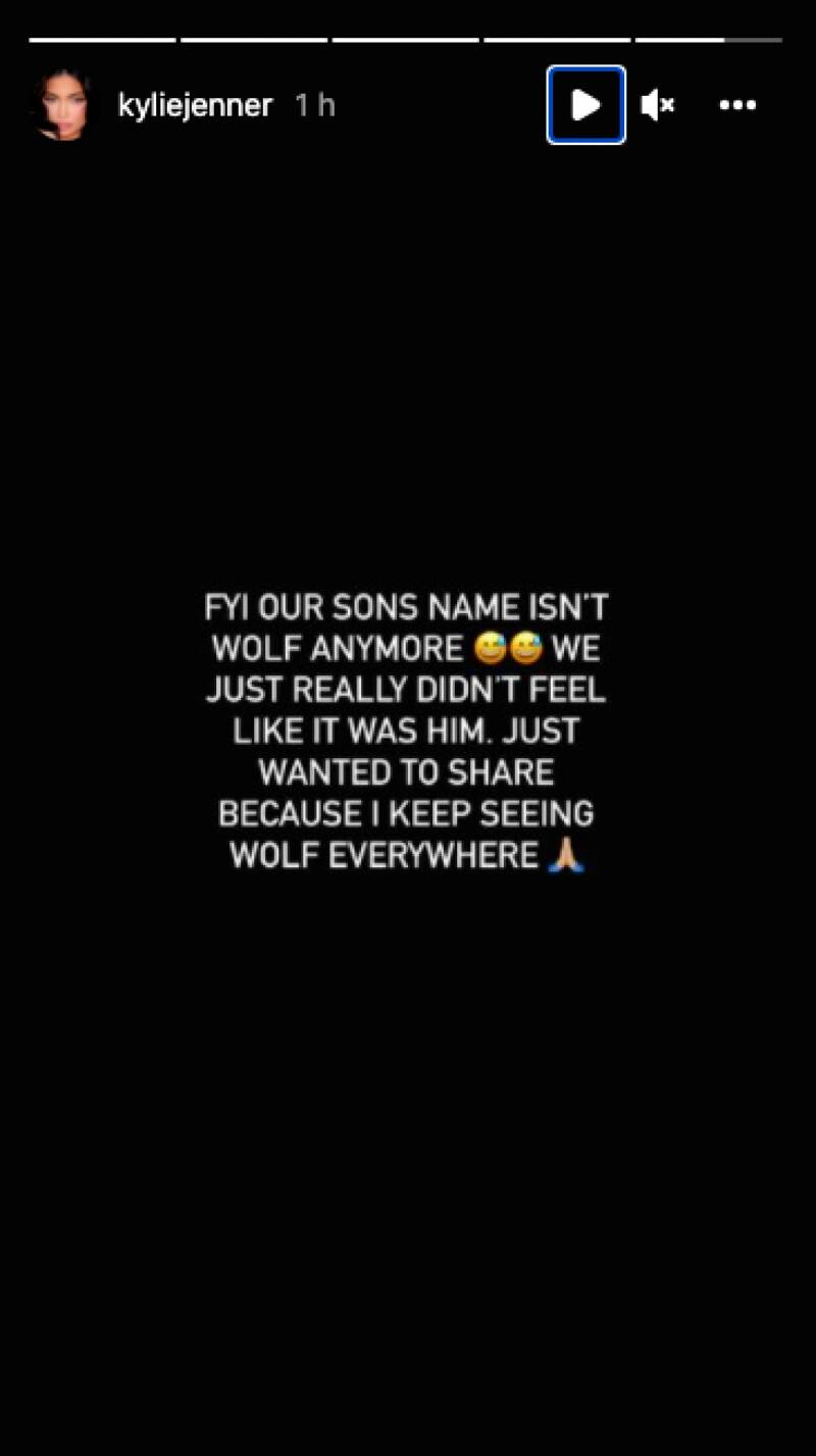 El 11 de febrero, Jenner había anunciado igualmente en sus historias de Instagram que el hermanito de Stormi se llamaría Wolf Webster. Más de un mes después, la socialité dijo que solo quería compartirlo porque "sigo viendo Wolf por todos lados". No dijo si conservaría el nombre de Jacques, como había filtrado TMZ.