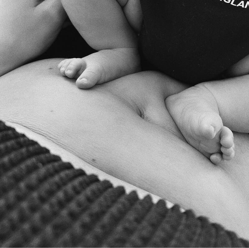 Para seguir promocionando su video de YouTube, Kylie Jenner hizo una publicación especial en su perfil de Instagram con una serie de fotografías y videos de sus momentos más especiales durante y después de su embarazo. Una de ellas fue una imagen en la que se ve su vientre al descubierto con los pequeños pies de su bebé.