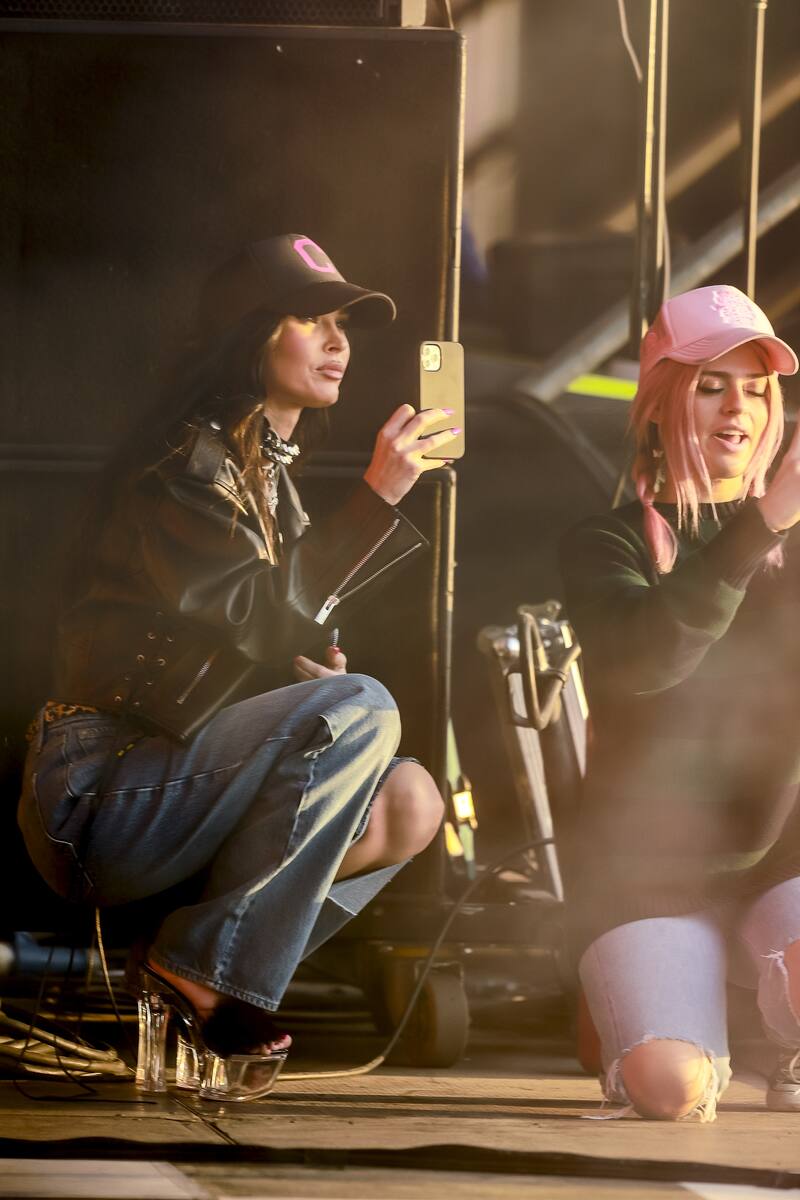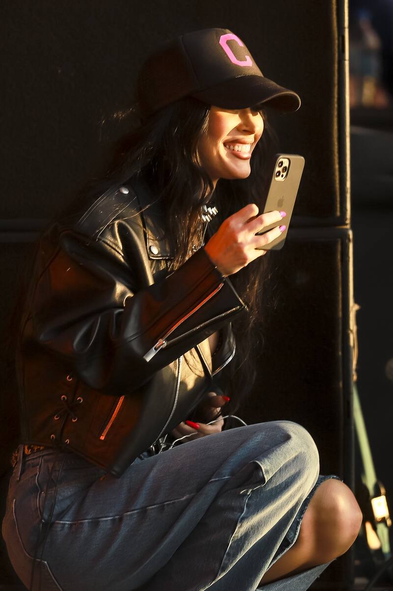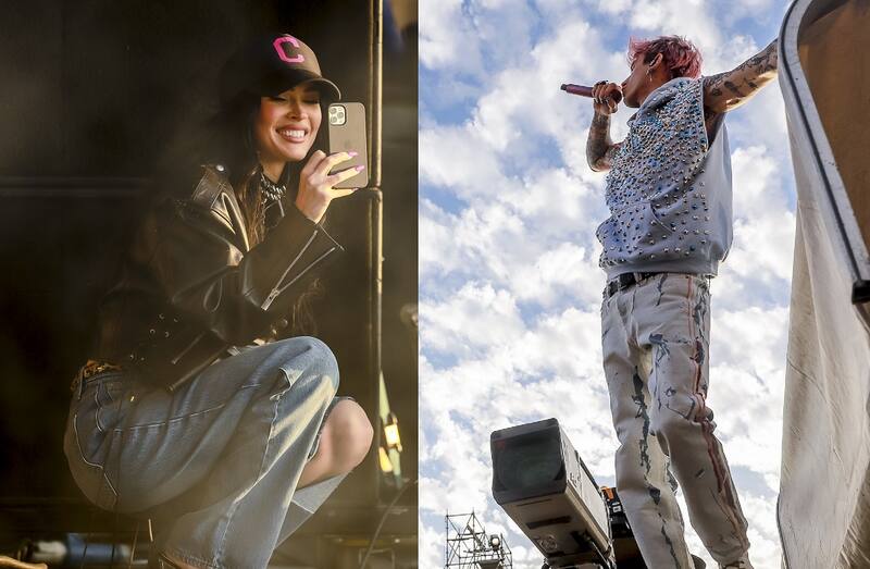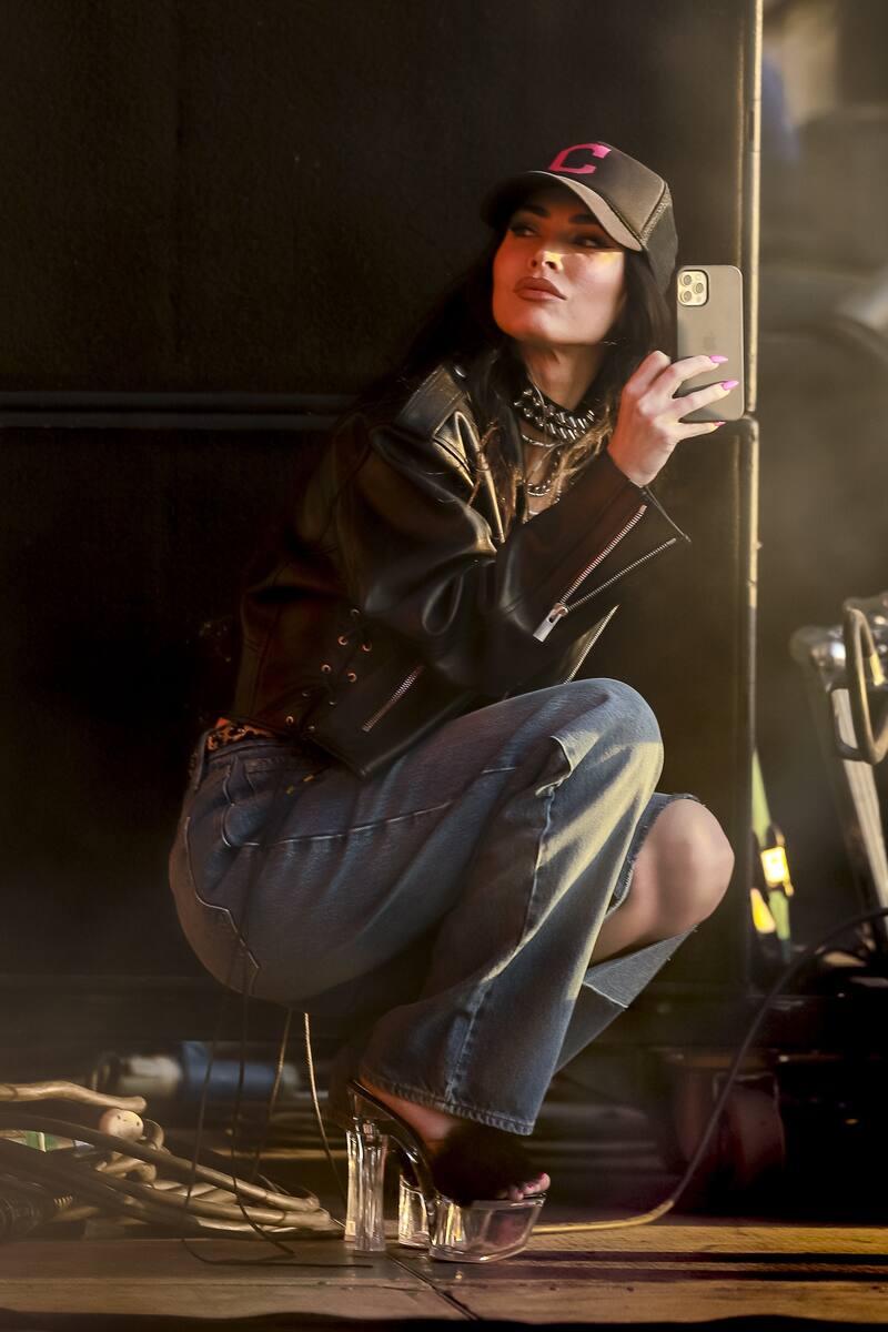 Como una fan más, se le vio grabando historias y sacando fotos de su presentación protegiéndose del sol con un jockey. A Megan Fox se le pudo ver cantando y sonriendo, mientas Machine Gun Kelly realizaba una potente presentación, que incluso incluyó subirse a la carpa que protegía a la mesa de sonido, a metros del escenario, generando locura en los asistentes.