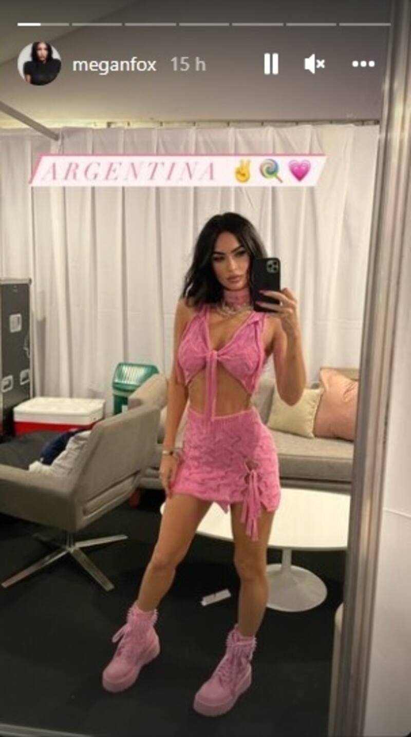 Megan Fox también estuvo en Argentina, donde compartió fotos de su look para la noche del sábado y fotos con la banda de su novio.