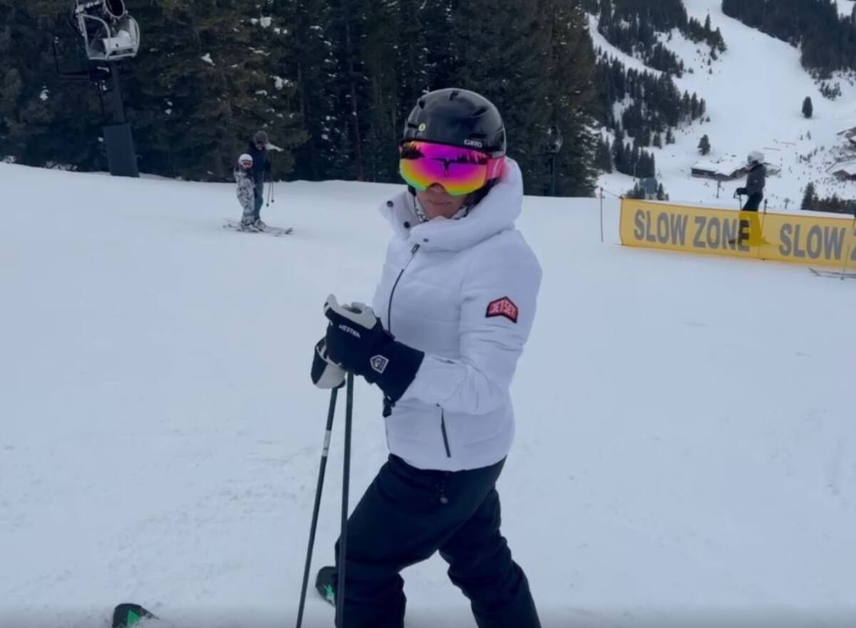 Para esta salida, la también actriz, utilizó un traje especial para esquiar en color blanco, casco y lentes rosa. En las grabación su seguidores pudieron ser testigos de lo bien que desliza en la nieve sin temor a una caída.