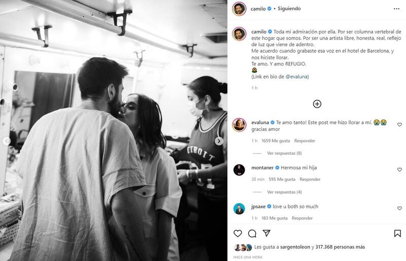 "Toda mi admiración por ella. Por ser columna vertebral de este hogar que somos. Por ser una artista libre, honesta, real, reflejo de luz que viene de adentro. Me acuerdo cuando grabaste esa voz en el hotel de Barcelona, y nos hiciste llorar. Te amo. Y amo REFUGIO", escribió el artista colombiano.