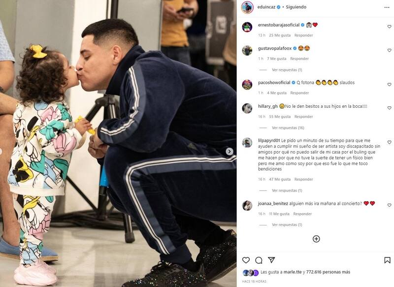 Sin embargo, la publicación del artista no fue bien vista por algunos de sus seguidores, ya que de inmediato reaccionaron a la foto que compartió Eduin en la que aparece besando a su hija Geraldine.