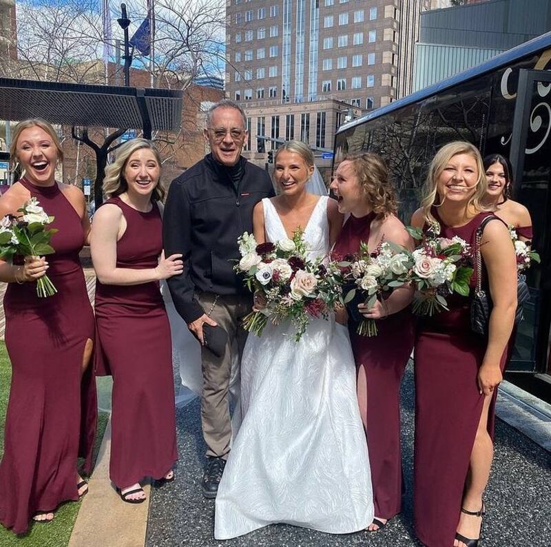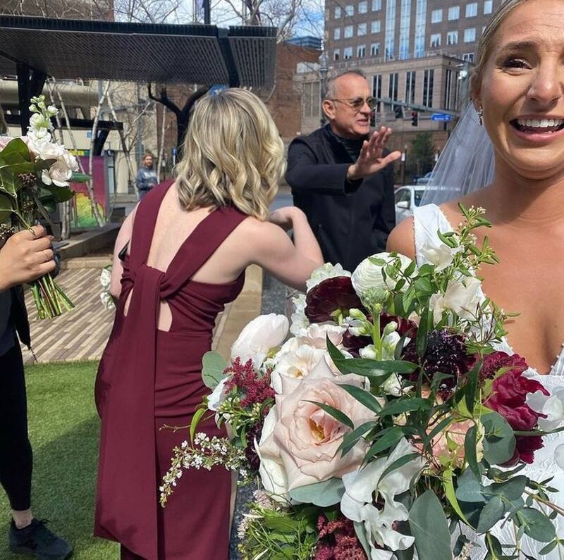 Afuera de un hotel en el centro de Pittsburg, una novia y sus damas de honor se alistaban para ir a la ceremonia cuando se llevaron una gran sorpresa. En ese momento el mismísimo actor Tom Hanks se le acercó y le susurró: "¡Hola! Soy Tom Hanks. Me encantaría hacerme una foto contigo".