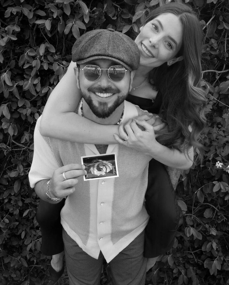 Para mostrar lo contentos que están, la pareja compartió varias fotografías en blanco y negro en sus perfiles sociales, en las que sostienen una imagen de una ecografía sobre la tripita de ella y mirándose amorosamente, felices por la buena noticia.