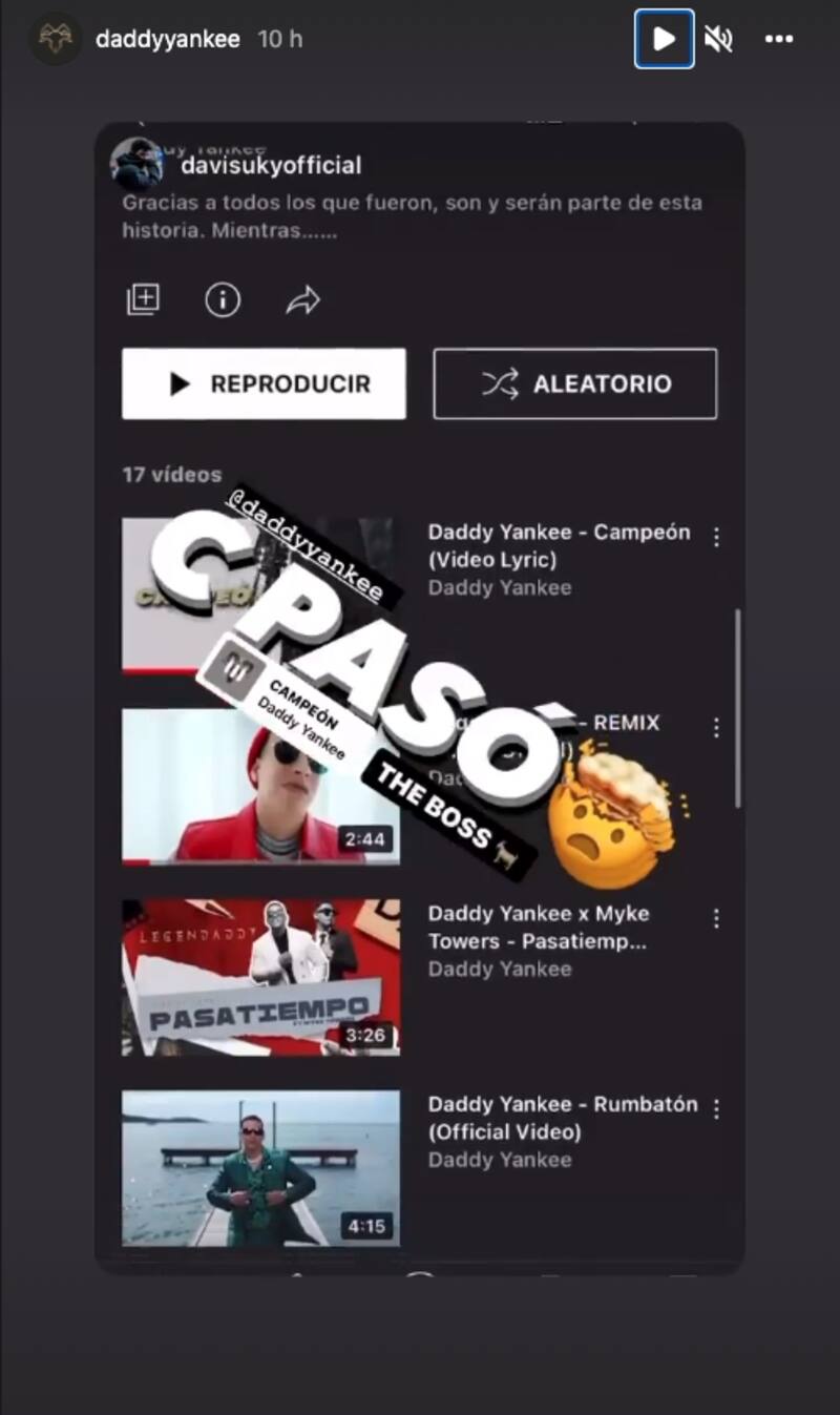 En el video en el que anunció su retiro, Daddy Yankee señaló: "Formalmente hoy anuncio mi retiro de la música, entregándoles mi mejor producción y mi mejor gira de conciertos".