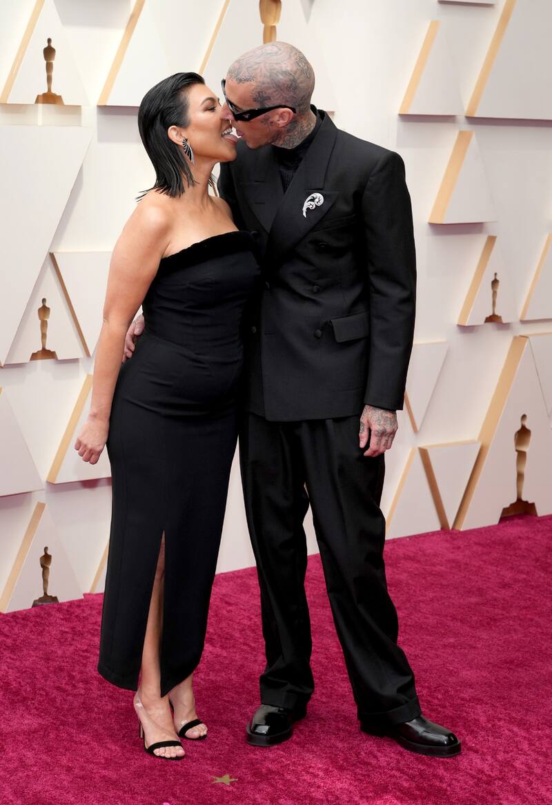 El baterista de “Blink-182” será parte del show musical de los premios, en la gala lo acompañó su prometida Kourtney, con quien se dio un apasionado beso en la alfombra roja.