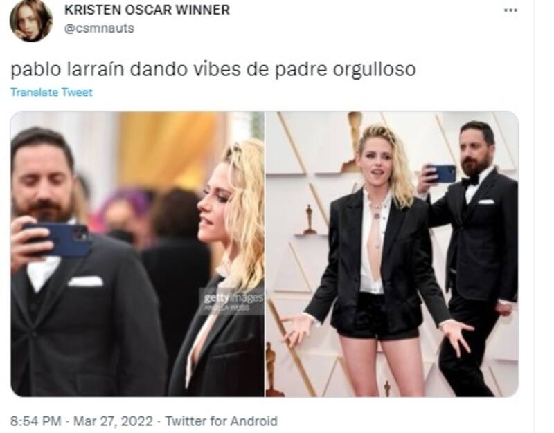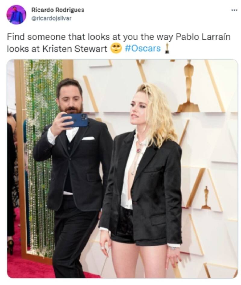 "Pablo Larraín dando vibes de padre orgulloso", "Pablo Larraín siendo el padre de Kristen Stewart" y "encuentra a alguien que te mire como Pablo Larraín mira a Kristen Stewart", son parte de algunos de los comentarios de los internautas.