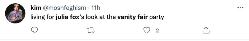 "Vivo por el look de Julia Fox en la fiesta de Vanity Fair".