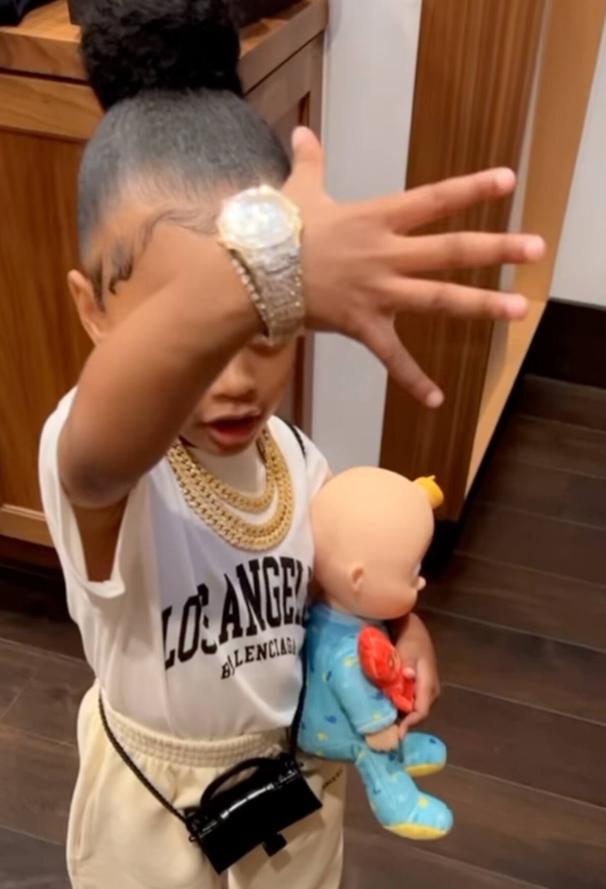 Esto no incluye sus cadenas de oro, que en otras fotos se ha visto que están decoradas con diamantes, al igual que sus enormes aretes. Además, aparece luciendo el reloj Patek Philippe que su mamá le regaló en su cumpleaños #2.