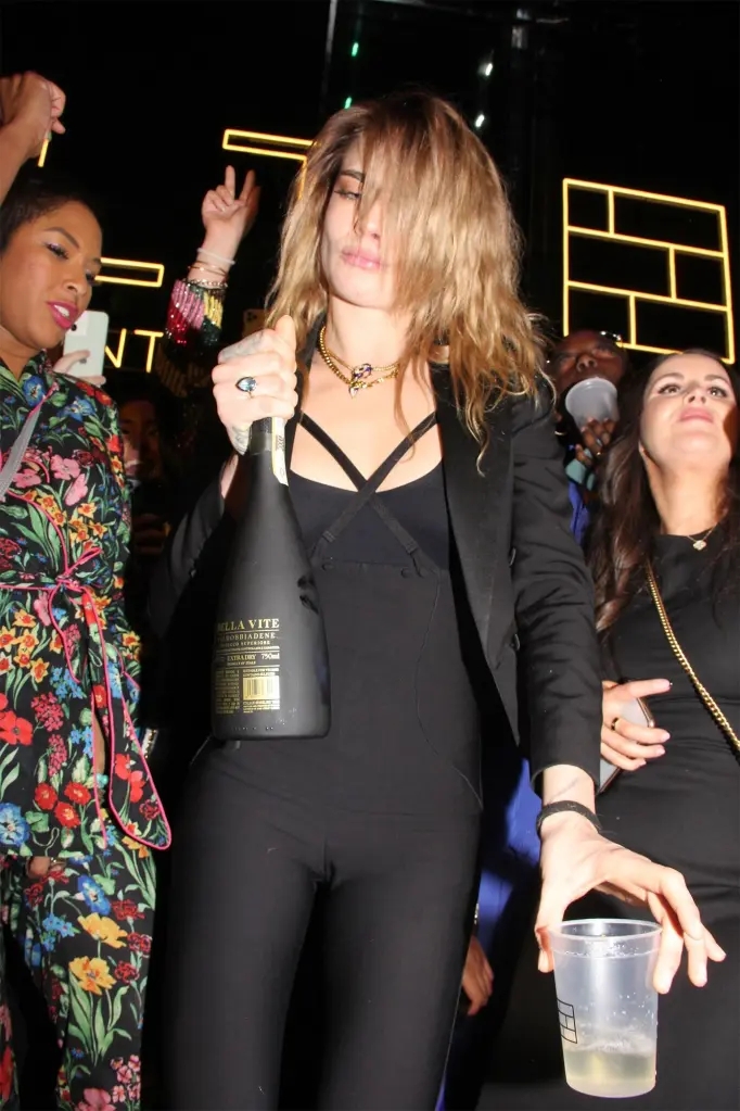 Según fuentes que hablaron con medios como Page Six, la supermodelo parecía estar "realmente ebria", agregando que siempre portaba en su mano una botella de su marca de alcohol vegano Della Vite, toda la noche y que bailó hasta cansarse.