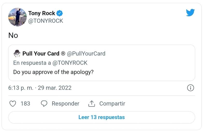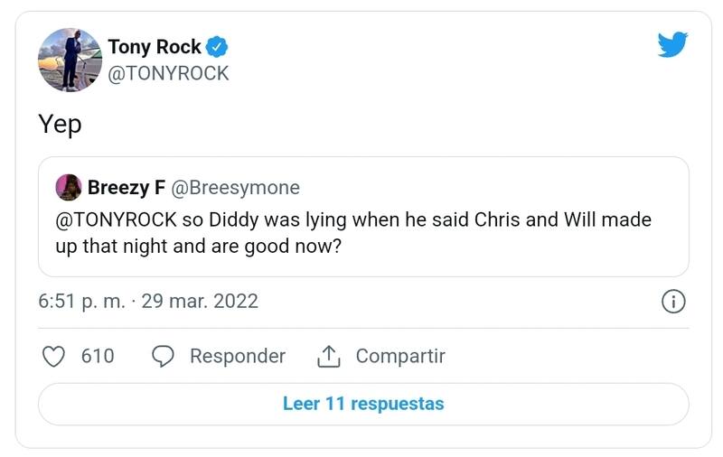 Tony le dijo a sus seguidores en Twitter que está "esperando" a que Will Smith hable directamente con su hermano y su familia tras el episodio en el Dolby Theater el domingo pasado. Por su parte, Chris aún no se ha pronunciado sobre el incidente y se negó a presentar cargos.
